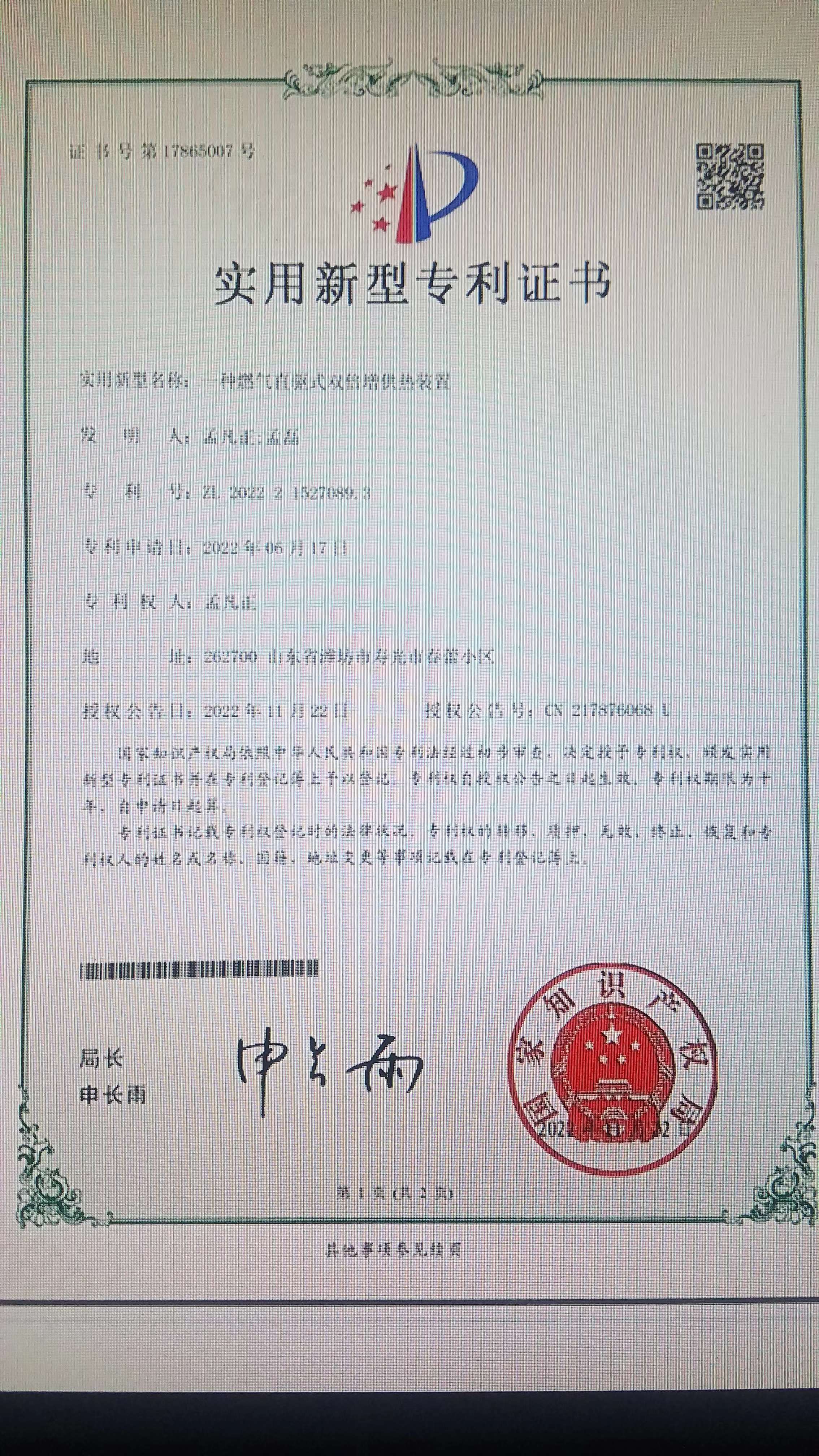發(fā)明專利證書